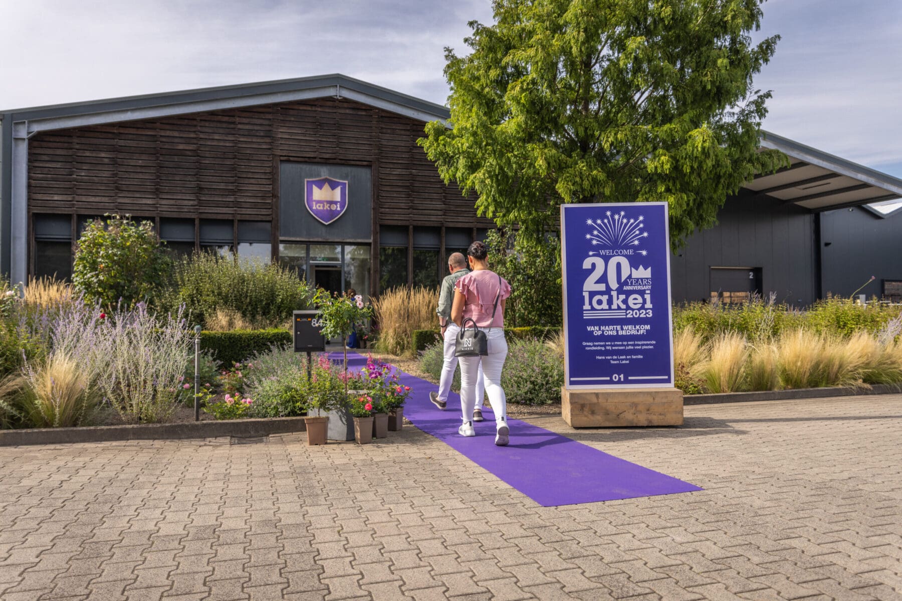 Het welkomstwoord werd gegeven door Hans, eigenaar van Lakei. Niet op de manier zoals je het misschien gewend bent, maar via een koptelefoon, wat bij velen kippenvel veroorzaakte. Midden in de rozenvelden stond een rozentaartje klaar, want wie jarig is trakteert. De volgende stop was een geurtest, hier mochten de gasten ruiken welke roos het was. Uiteindelijk eindigden de gasten in de feesttuin.