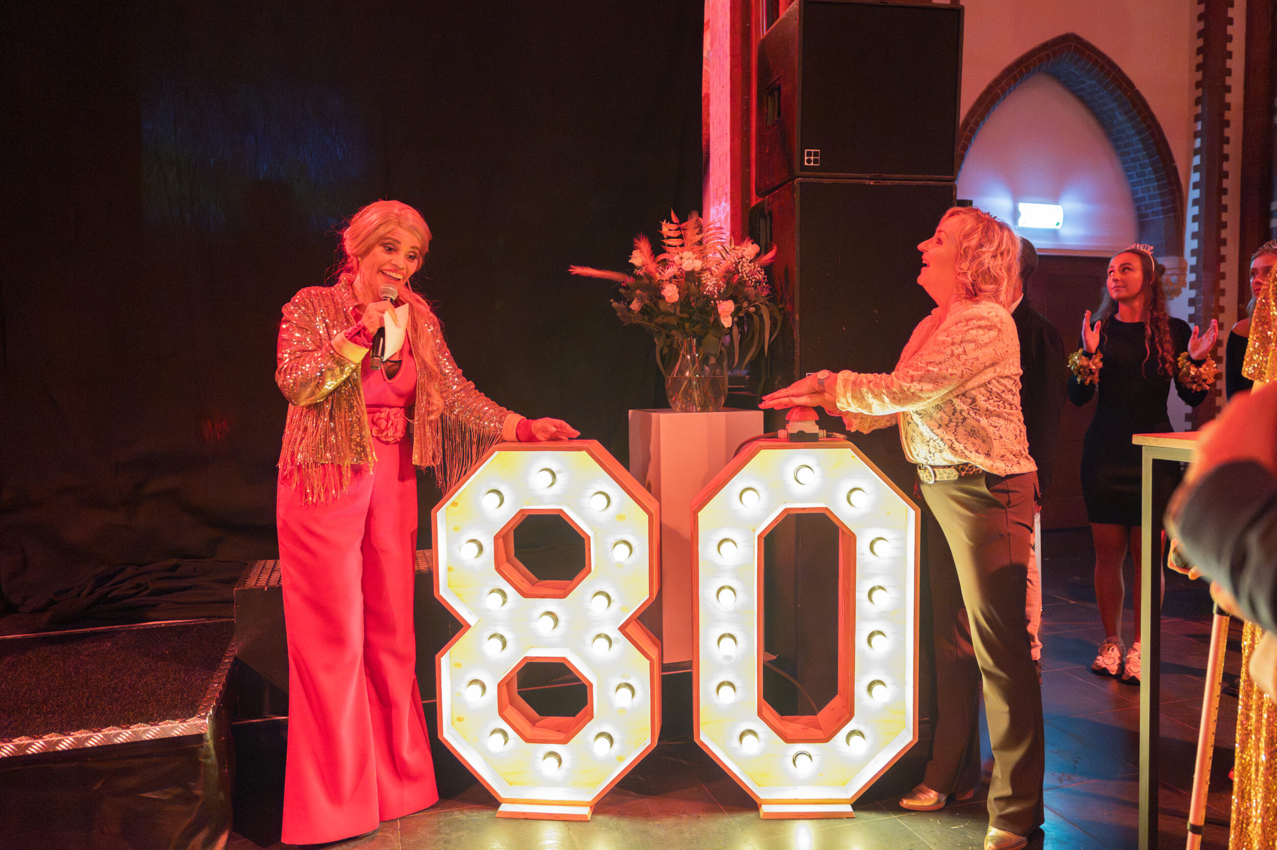 Tachtig jaar bouwen, samenwerken en groeien: dat moest gevierd worden! Met het thema “goud voor jou” brachten we een ode aan iedereen achter Bouwmij Janssen. Bij de ingang stond de paparazzi al klaar en via de gouden loper liepen de gasten vol verwachting de prachtige Lambertuskerk in Beers binnen. We trapten de avond af met waardering in een leuk jasje door Patty Pitt en als verrassing kreeg de directie een onvergetelijk cadeau van de medewerkers en pensionado’s.